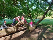 Pozornost im je privukla prostrana i golema tuja ili kako je nazivaju „kapelica“. Kad su se uvukli oduševila ih je veličina središnjeg stabla te mnoštvo manjih stabala. Ušavši unutra djeca ulaze u novu dimenziju prostora koji potiče djecu na različite oblike kretanja poput penjanja, puzanja, skakanja, spuštanje po guzi, vješanja, skakanja, trčanja kao i simboličku igru (gusarski brod, autobus, podmornica…). Prilikom tih aktivnosti djeca strpljivo čekaju na red, testiraju svoje granice, nude pomoć onima kojima je to potrebno, čestitaju i navijaju jedni za druge prilikom uspješno savladanih prepreka.