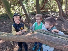 Detaljnijim pregledom i taktilnim istraživanjem vanjske kore tuje djeca primjećuju različite slojeve kore s plićim ili dubljim pukotinama u kojima se zadržala kišnica. Djecu to potiče na dodavanje materijala poput zemlje i piljevine čime dobivaju masu koja ih potiče na modeliranje i dodavanje neoblikovanog drvenog materijala. Prilikom te aktivnosti djeca surađuju i izmjenjuju ideje, mjere količinu dodanog materijala. Osim toga primjećujemo i samomotivaciju te uživanje u procesu rada te zainteresiranost za uspjeh u onome na čemu rade.