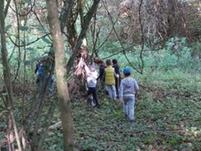 U šumi djeca prikupljaju neoblikovani materijal poput kore drveta, grančice, listove biljaka koje im koriste neposredno tijekom aktivnosti u prirodi ili pak ih nosimo sa sobom u vrtić za daljnje aktivnosti. Takav neoblikovan materijal djeci daje priliku utjecaja za sva senzorna područja, stimulirajući djeluje na njih. Kod djece se primjećuje grupiranje zboh građenja skloništa od sakupljenih grana i lišća. Primjećivanje dovoljno čvrste lijane koju pretvaraju u ljuljačku, dok drugi istražuju teren šume koji je pod nagibom od 45 stupnjeva prilika za uvježbavanje grube motorike (uzbrdo i nizbrdo hodanje, trčanje, spuštanje). Djeca su oprezna na moguće poznate opasnosti (udarci od grane, trnje na kori drveća, korijenje drveća…) i upozoravaju jedni druge na to.