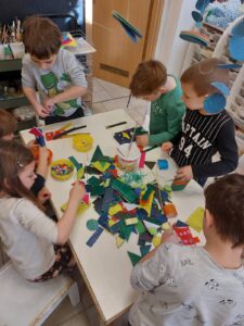 Dječji vrtiće Malo drvo prijavljeni program “Sanjaju li roboti električne knjige” održao je aktivnost vezanu uz Noć knjige u prostoru SBD-a starije odgojne skupine. Oformljen je centar predčitalačkih vještina s knjižnicom koju smo dodatno opremiti knjigama vezanim uz robote. Odgojitelji su zajedno s djecom odabrati prigodnu priču u Gradskoj knjižnici i čitaonici Metel Ožegović Varaždin. Priču smo pročitali u Parku Vatroslava Jagića gdje su se djeca mogla odvojiti od gradske vreve i boraviti na zelenim površinama. Nakon toga s djecom smo razgovarali o njihovom doživljaju i utjecaju odabrane priče. Dječje izjave smo uobličili te izradili zajedničku priču za odgojnu skupinu. U prostoru SBD-a, u centru knjižnice, djeca su mogla samostalno uzimati knjige te raditi na aktivnostima rimovanja riječi, osmišljavanja i izražavanja vlastitih priča i slikovnica. Realizirali smo i aktivnost izrade robota.